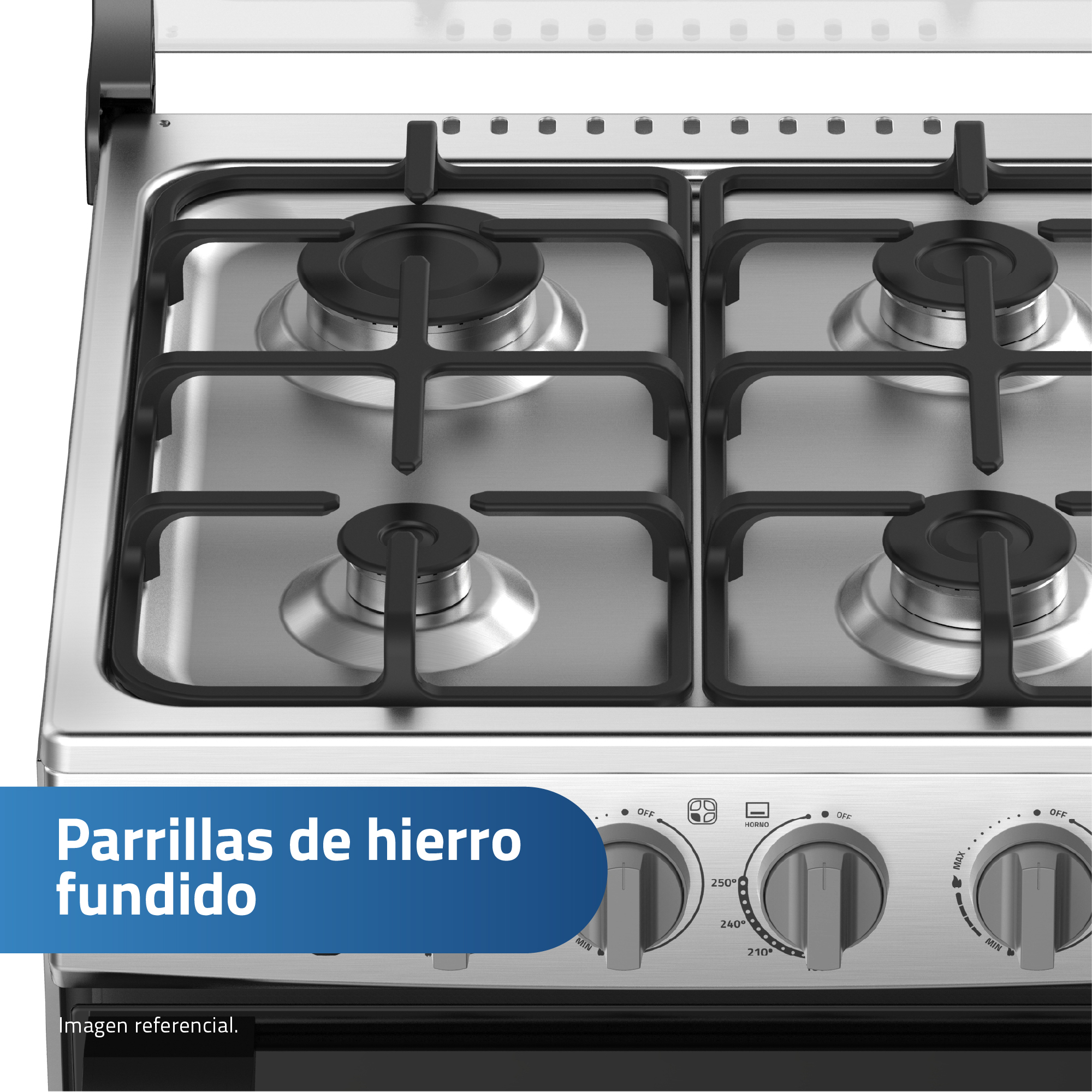 - Tamaño de quemadores: 1 quemador grande, 2 quemadores medianos y 1 quemador pequeño